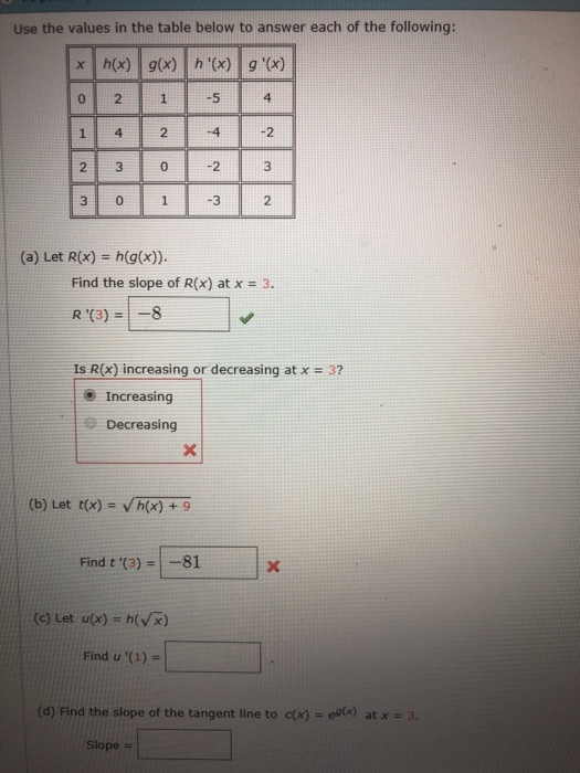 Solved Use The Values In The Table Below To Answer Each Of Chegg Com